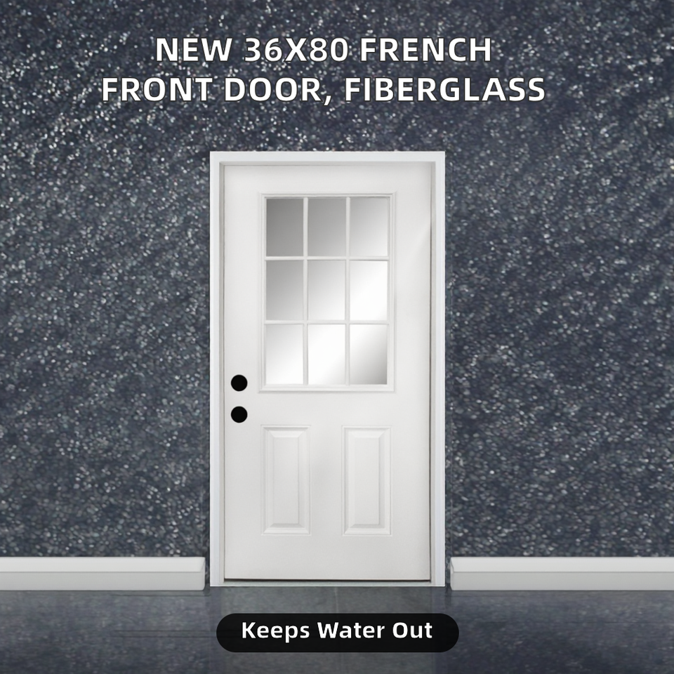 New Arrival 36x80 Contemporary Front Door Right Hand Inswing Exterior French 9 Lite Low-E Glass Fiberglass Outdoor for Villas