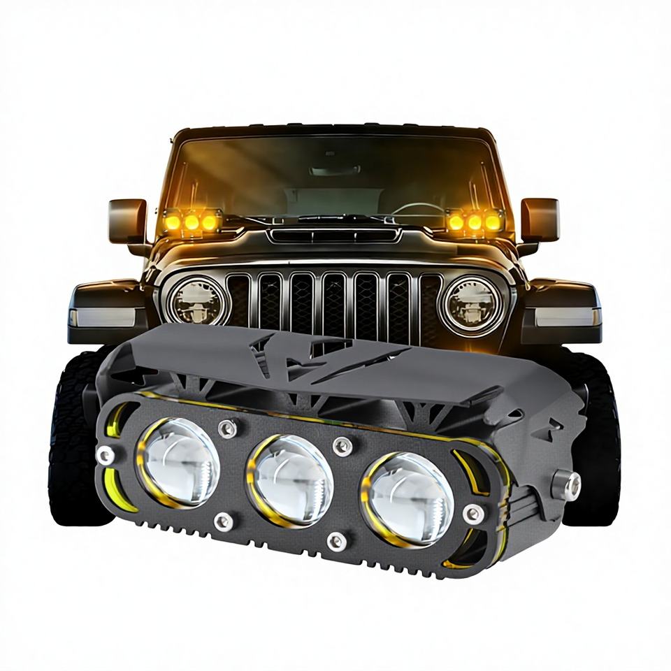 New Arrival 3Lens Front LED Spotlight White+Yellow Dual Color IP67 Waterproof Motorcycle Headlights for Cars SUV ATV MO-233