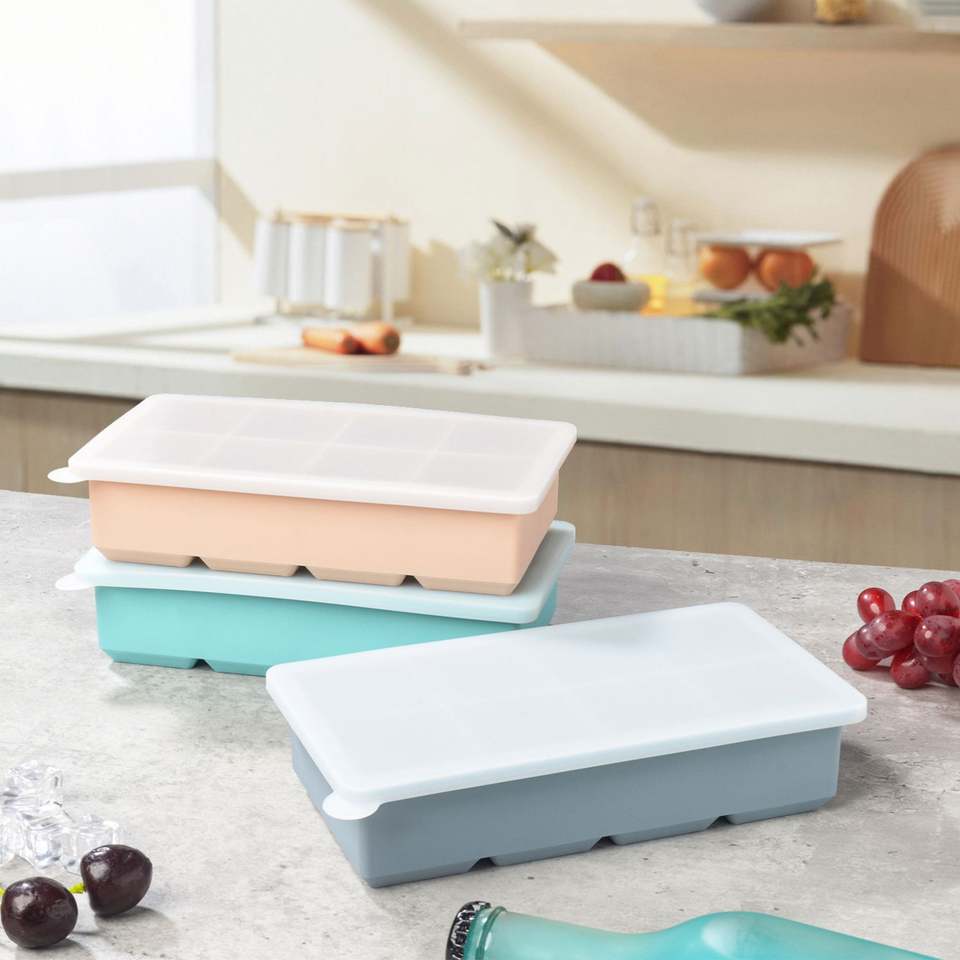 New Arrival 8 Grid Ice Tray Silicone square Ice Box Freezer Box Silicone sealed Cap Household DIY Ice Cube Mold