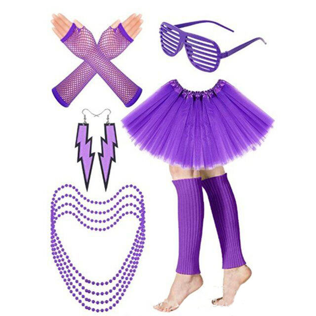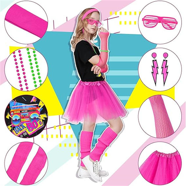 New Arrival 80s Outfit Women Costume Accessories Set T Shirt Shorts Tutu Skirt Neno Party Leg Warmers Headband