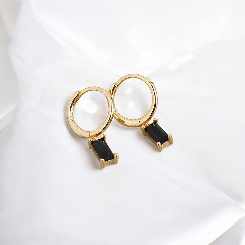 New Arrival 925 Sterling Silver Baguette Black Onyx Gemstone Hoop Earrings Gold Vermeil Stud Earrings for Women for Gifts