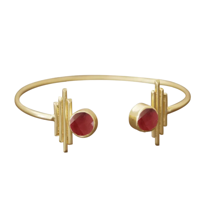 New Arrival 925 Sterling Silver Cuff Bangle Gold Plated Adjustable Band Natural Garnet Hydro Original Gemstone Geometric Shape