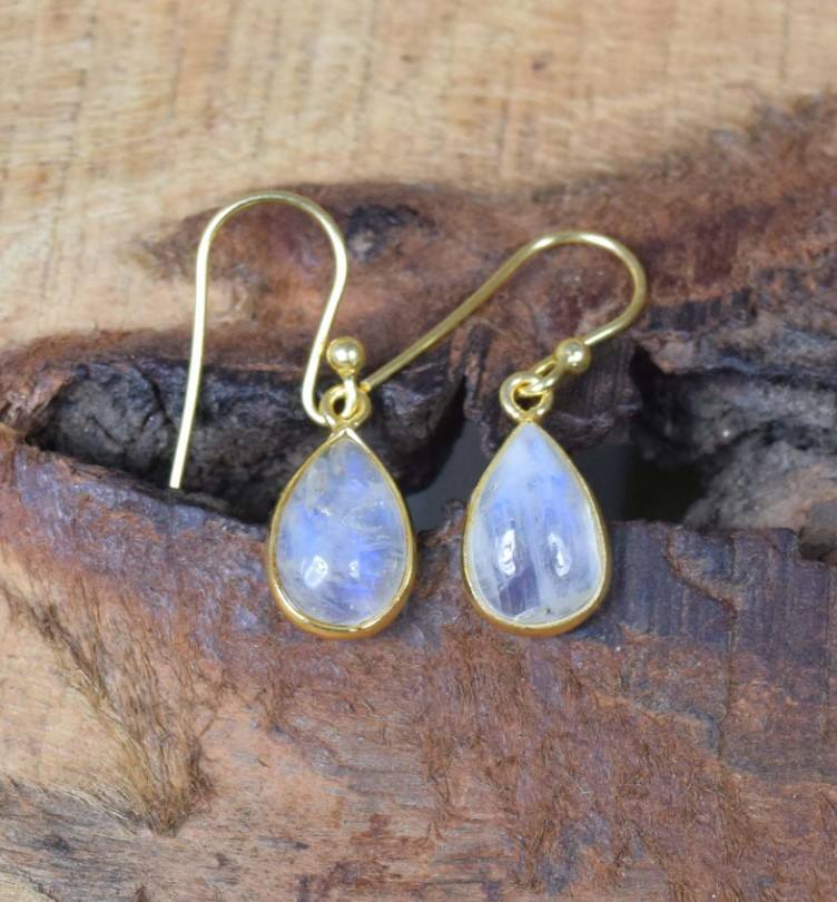 Natural Moonstone Gemstone Silver Earrings