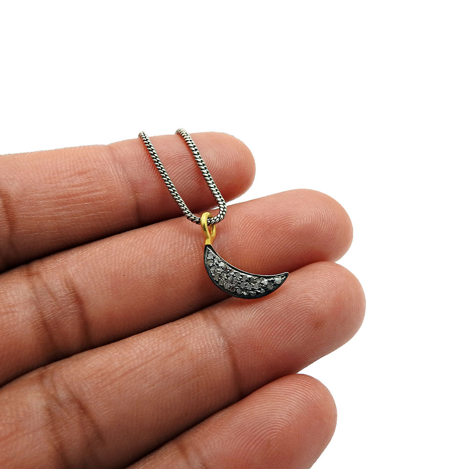 New Arrival 925 Sterling Silver Paved Diamond Custom Made Half Moon Pendant Designer Fine Diamond S925 Charm's Pendants Bulk OEM
