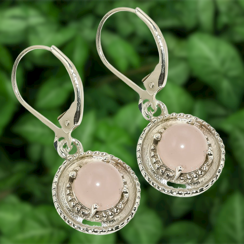 New Arrival 925 Sterling Silver Women's Earrings Customizable Vintage Natural Rose Quartz Birth Gemstone Pearl Diamond Flower