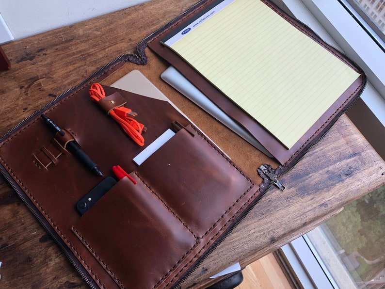 New Arrival Genuine Leather A5 Document Folder Zipper Conference Bag Briefcase Portfolio with Handle Vintage LPO-0052