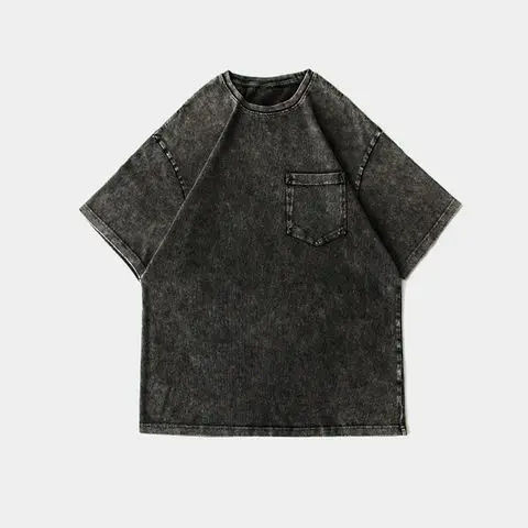 New Arrival Acid Wash T Shirts Front Pocket Digital Printing Light Weight Cotton Breathable Loose Fit O-Neck Mens OEM Wholesale