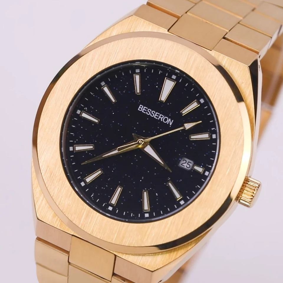 New Arrival Analog Luminous Dial Luxury Quartz Watch Men Create Your Own Logo Custom Gold Watch 22k Gold Plating Watch