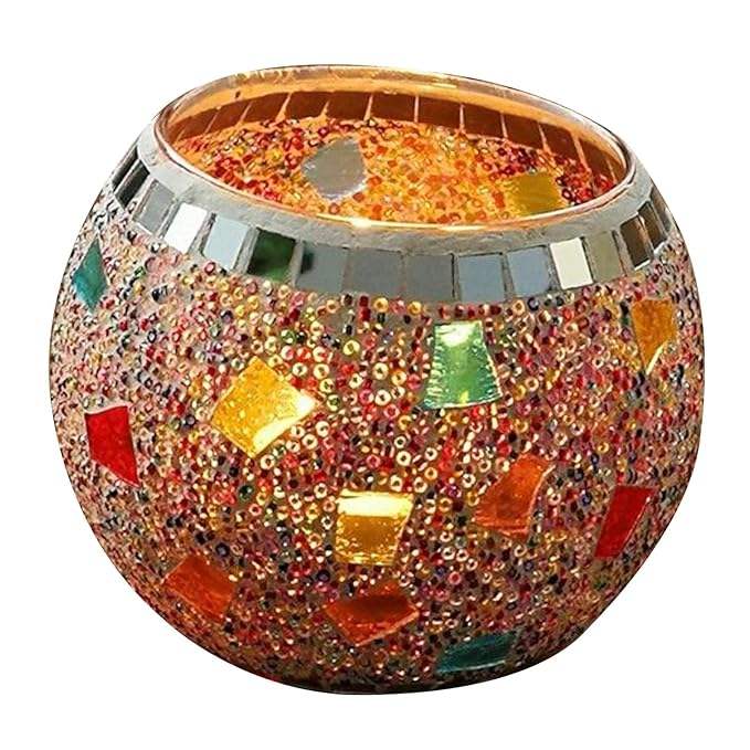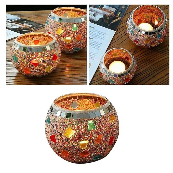 New Arrival Available Round Candle Jar Glass Crackle Mosaic Candle Holder Tea Light Holder Votive Best for Home Decoration