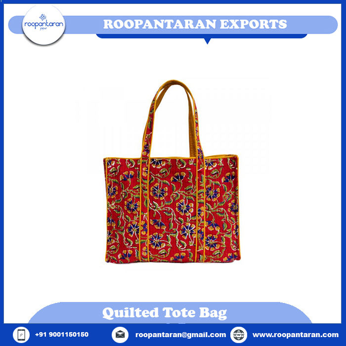 New Arrival Best Quality White Tote Bag Hand Block Printed Soft Cotton Padded Quilted Evening Tote Bag for Bulk Supply