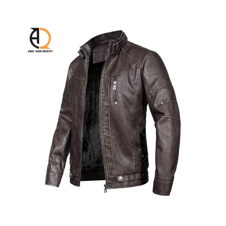 New Arrival Best Sale Men's Vintage Style Leather Jacket Custom Made with Stand Collar and Plain Fabric