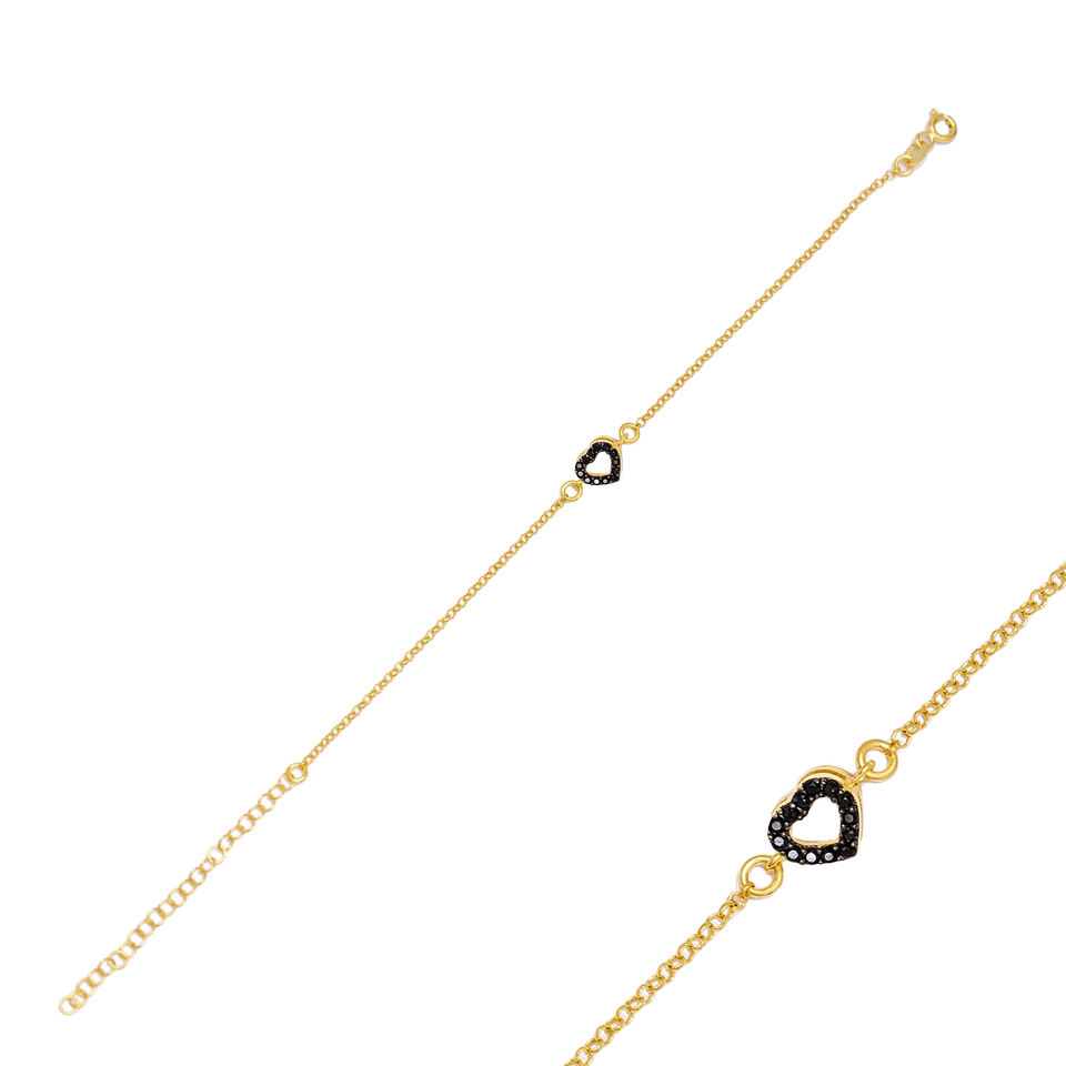 New Arrival Black Zircon Stone Heart Charm Bracelet Handmade Wholesale Turkish 925 Sterling Silver Jewelry
