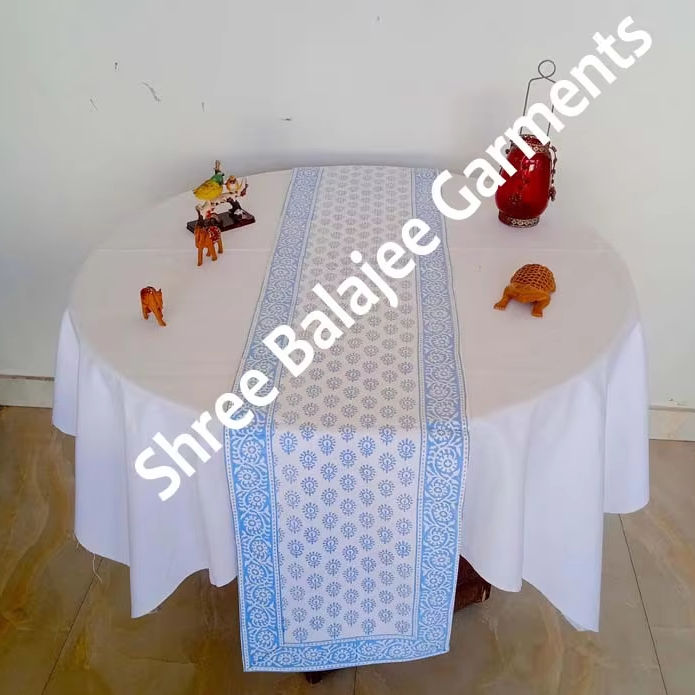 New Arrival Modern Customizable Indian Hand Block Printed Cotton Table Runner Beautiful Blue Floral Design Wedding Events Home
