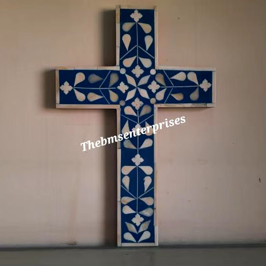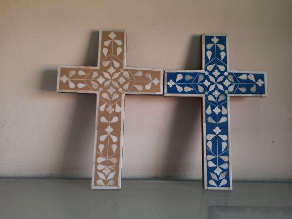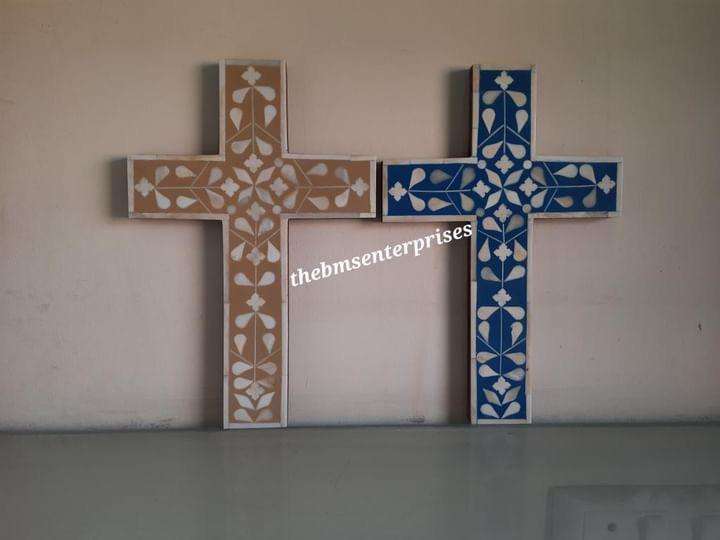New Arrival Bone Inlay Cross Wall Sign Religious Style Home Decor from India for Christmas New Year Wood Crafts Wooden Boxes