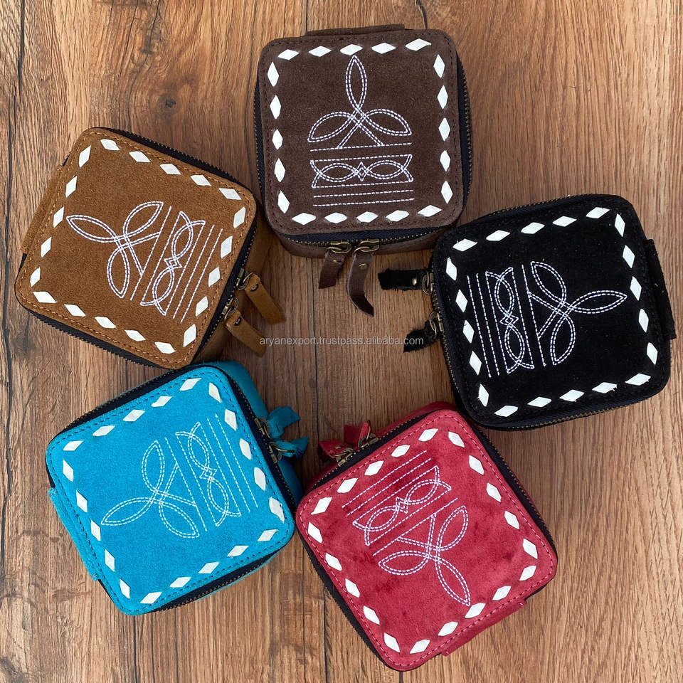 New Arrival Boot Stitch Suede Leather Jewelry Box Stylish Travel Divider Storage Organizer Cases Western Accessory Divider Cases