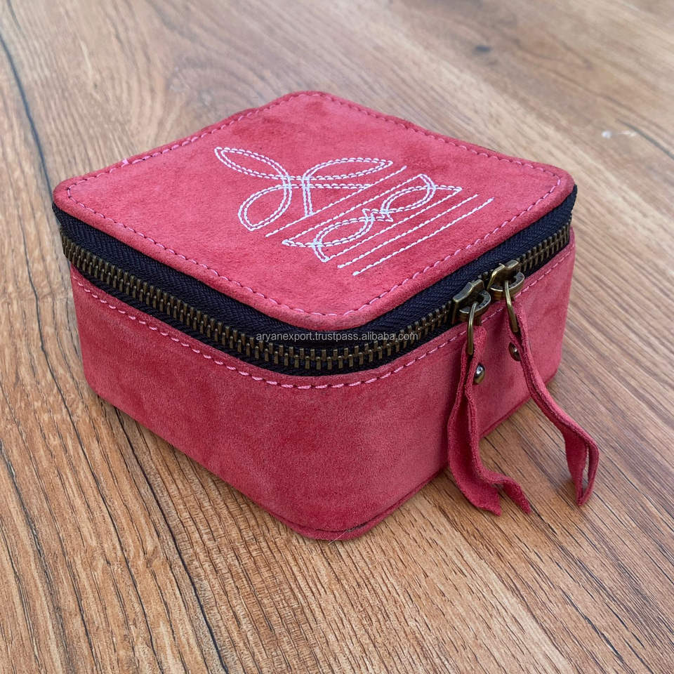 Suede Leather Boot Stitch Embroidered Jewelry Storage Box