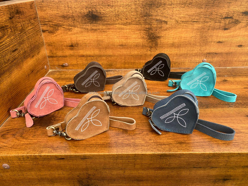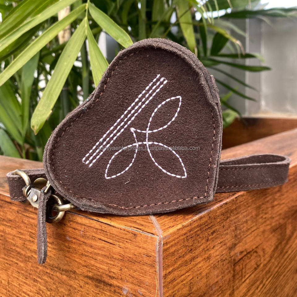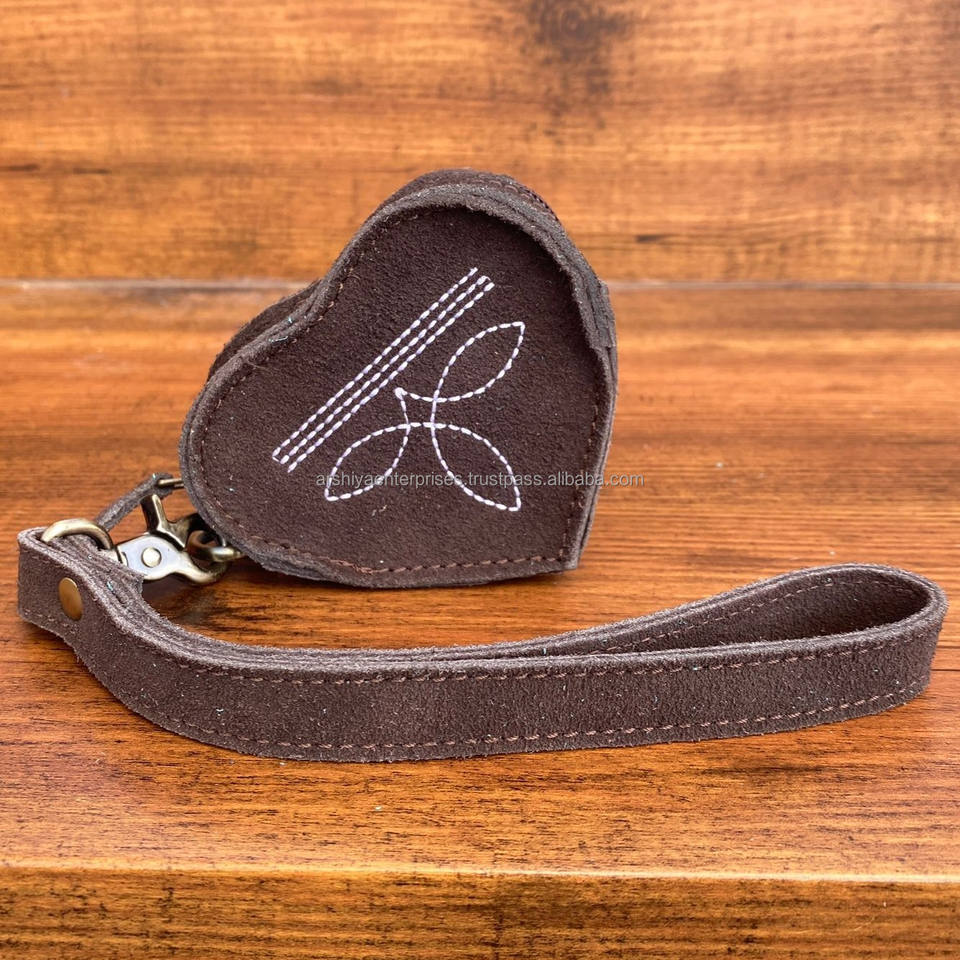 New Arrival Boot Stitch Suede Leather Heart Shaped Wristlet Coin Purse for Women Fashionable Style Genuine Leather Small Wallet