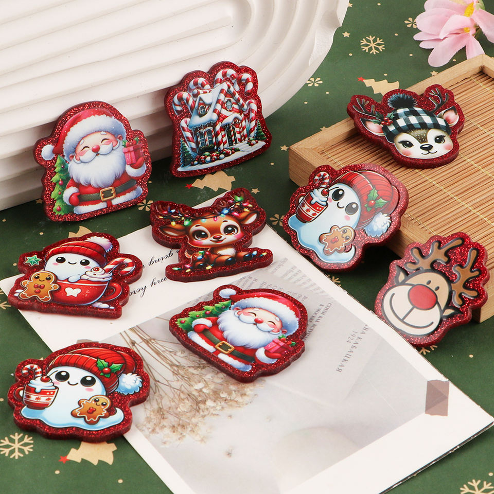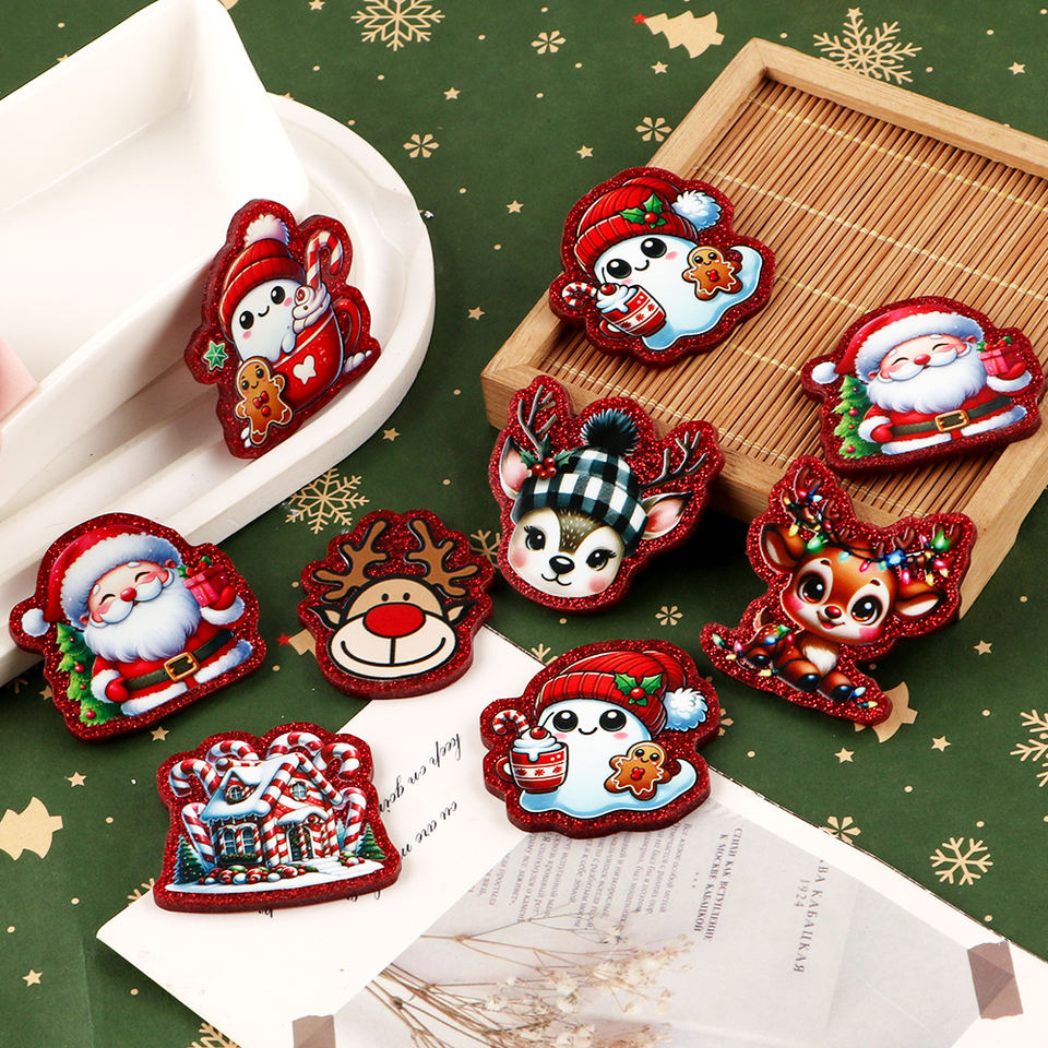 New Arrival DIY Mobile Phone Case Accessories Cute Cartoon Christmas Acrylic Sticker Plastic Beads Flatback Badge Reels
