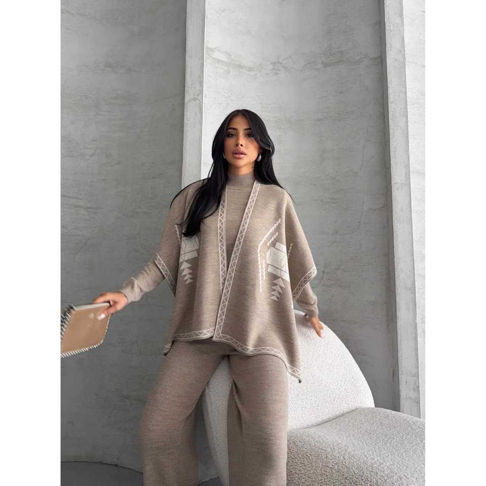 New Arrival Casual Three-Piece Poncho Knit Set XL Size Free Size for Summer and Autumn Seasons