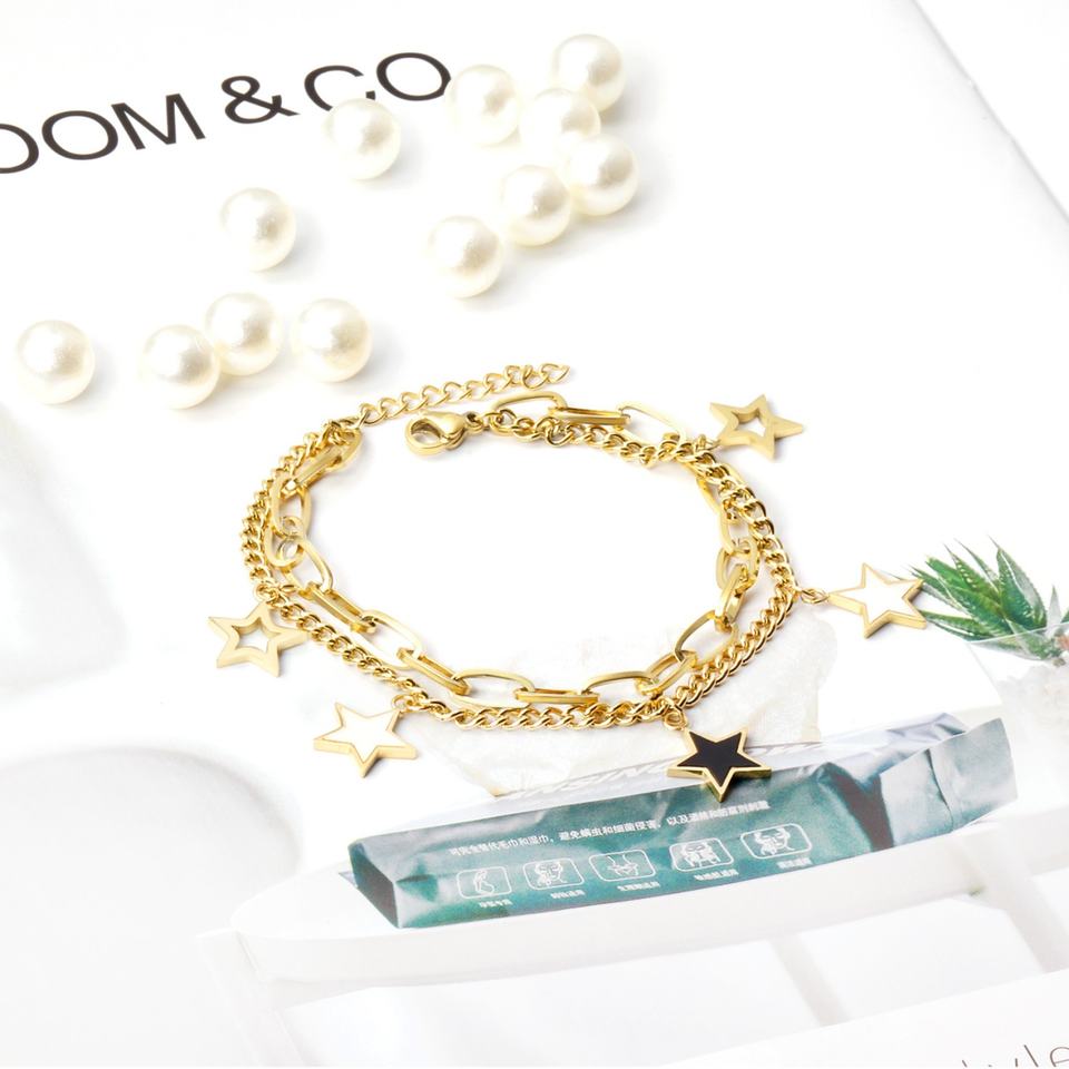 New Arrival Charm 14K Gold Stainless Steel Design Double Chain Bracelet With Shell Stars Jewelry Bracelet