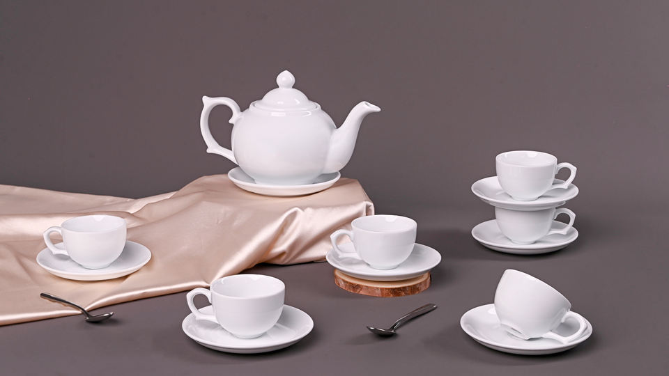New Arrival Classic White Porcelain Tea Set 500ml Elegant Oval Shape, High-Quality Ceramic for Hospitality Use