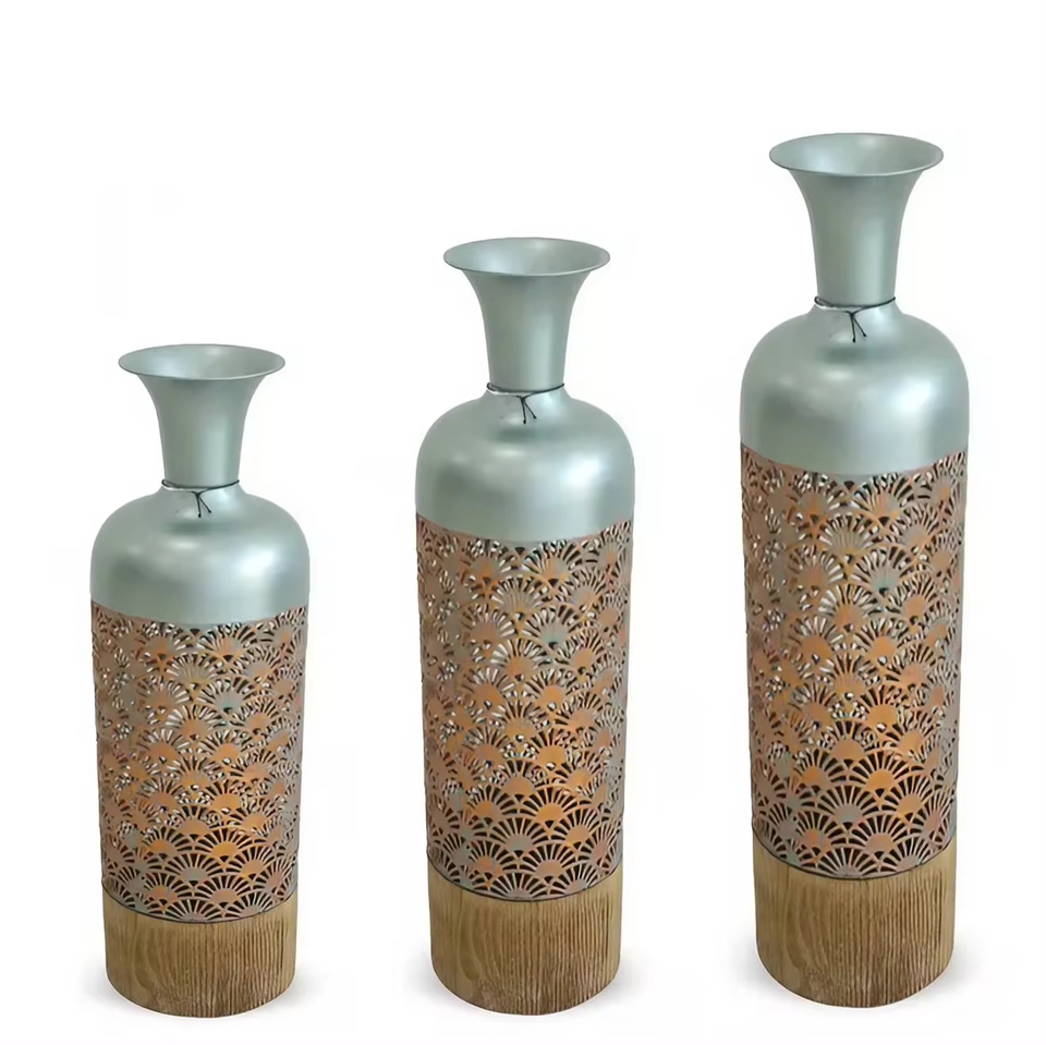 New Arrival Coastal Iron Flower Vase Set Multi-Color Textured Cylinders Home Decor Wholesale Factory Direct Best Price"