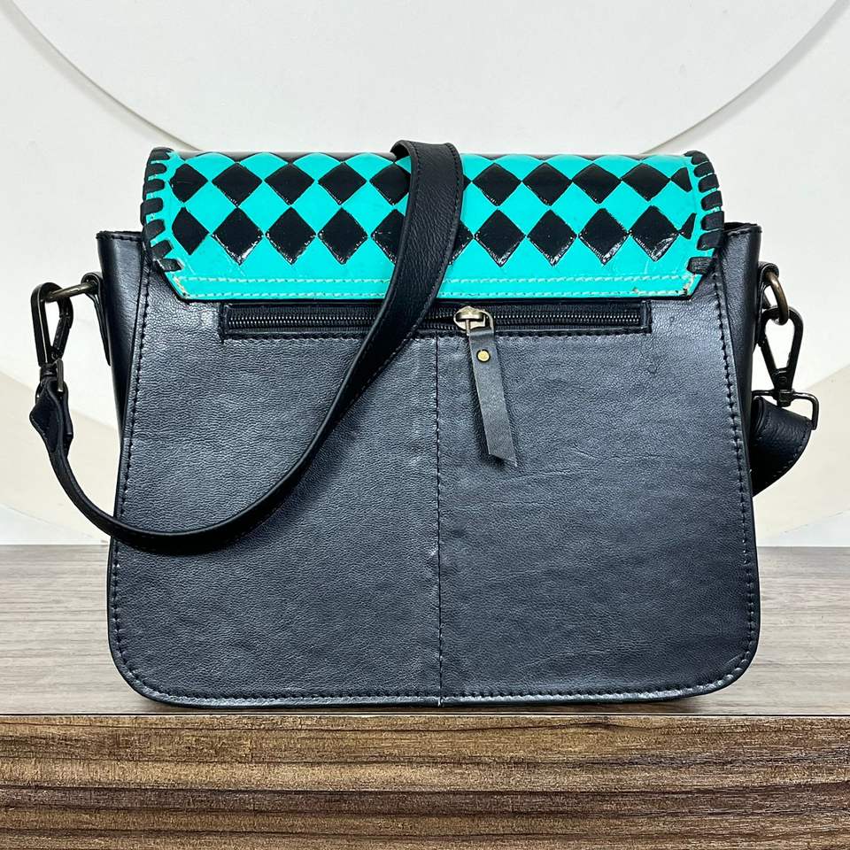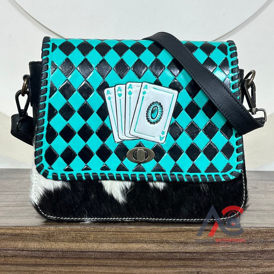 Product name:Hand Tooled Cow Leather Checkered Handbag