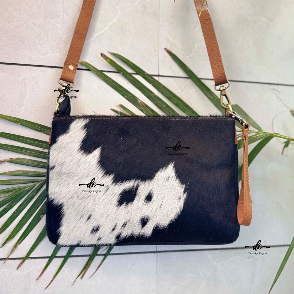 New Arrival Cowhide Fur Leather Handbags for Women Stylish Tan Color Casual Wristlet Sling Bag Western Leather Multi Use Bags