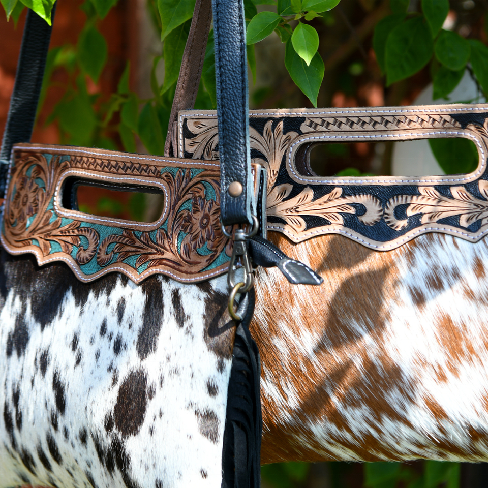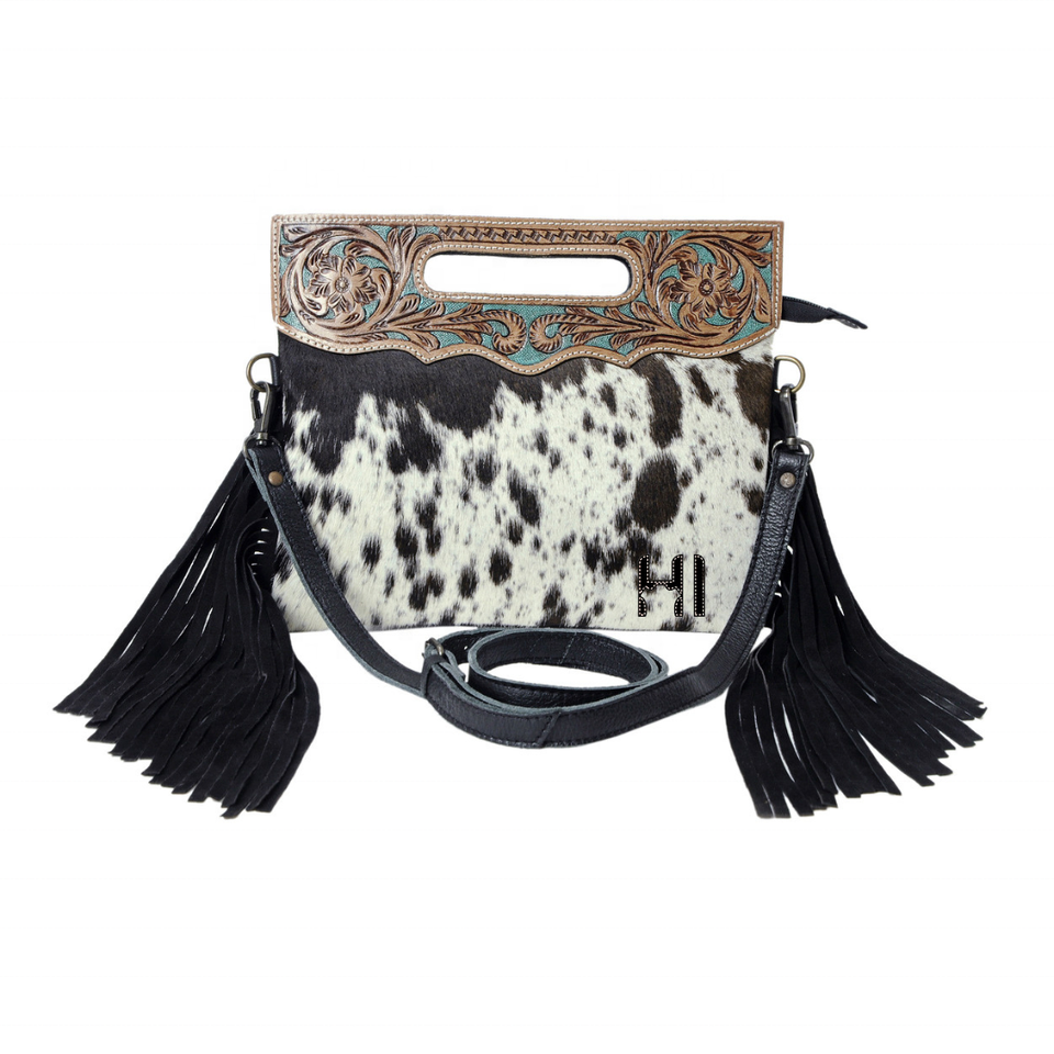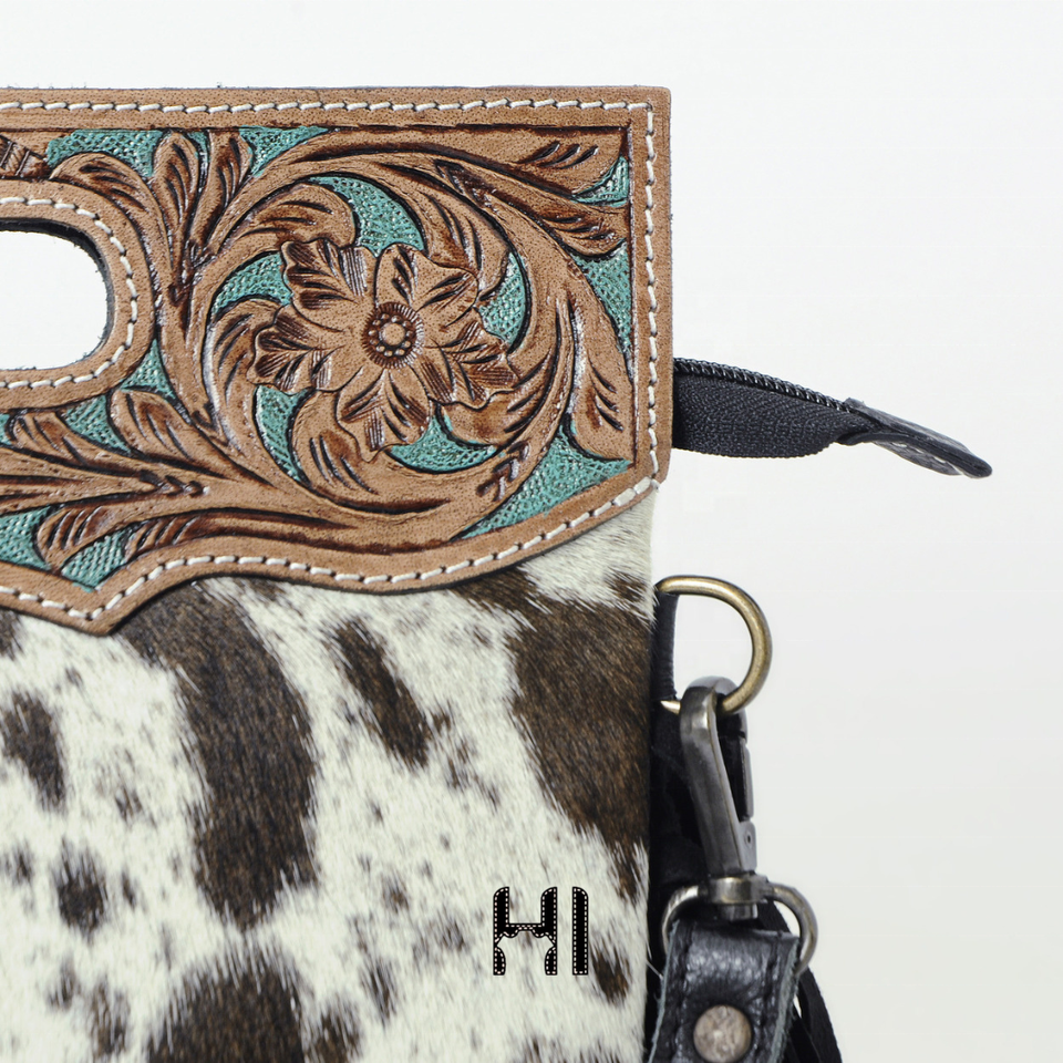 New Arrival Cowhide Hairon Leather Crossbody Bag With Suede Fringes Hand Tooled luxury handbags for women WIth Adjustable Straps