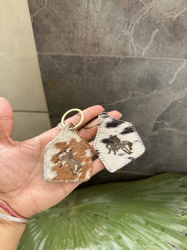 Product Name:Cowhide Leather Keychain Leopard Cow Print Leather Keyrings Keychains