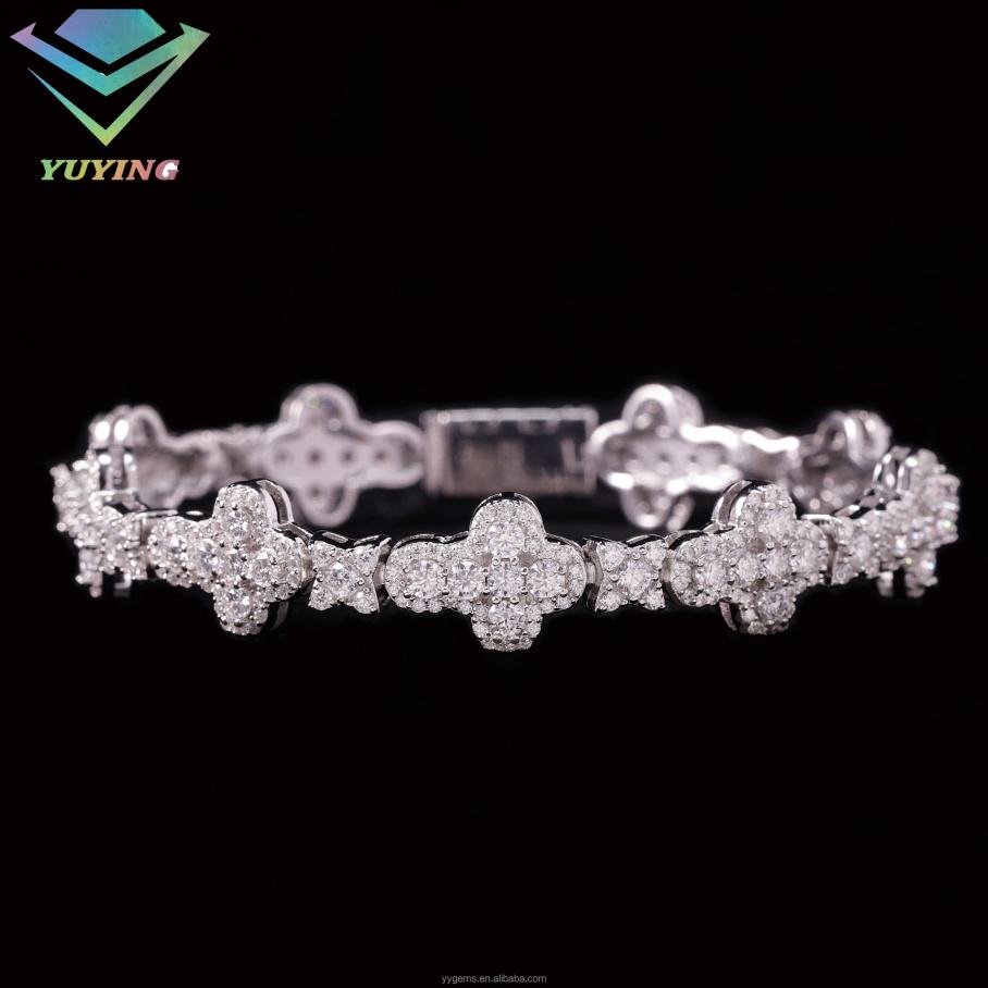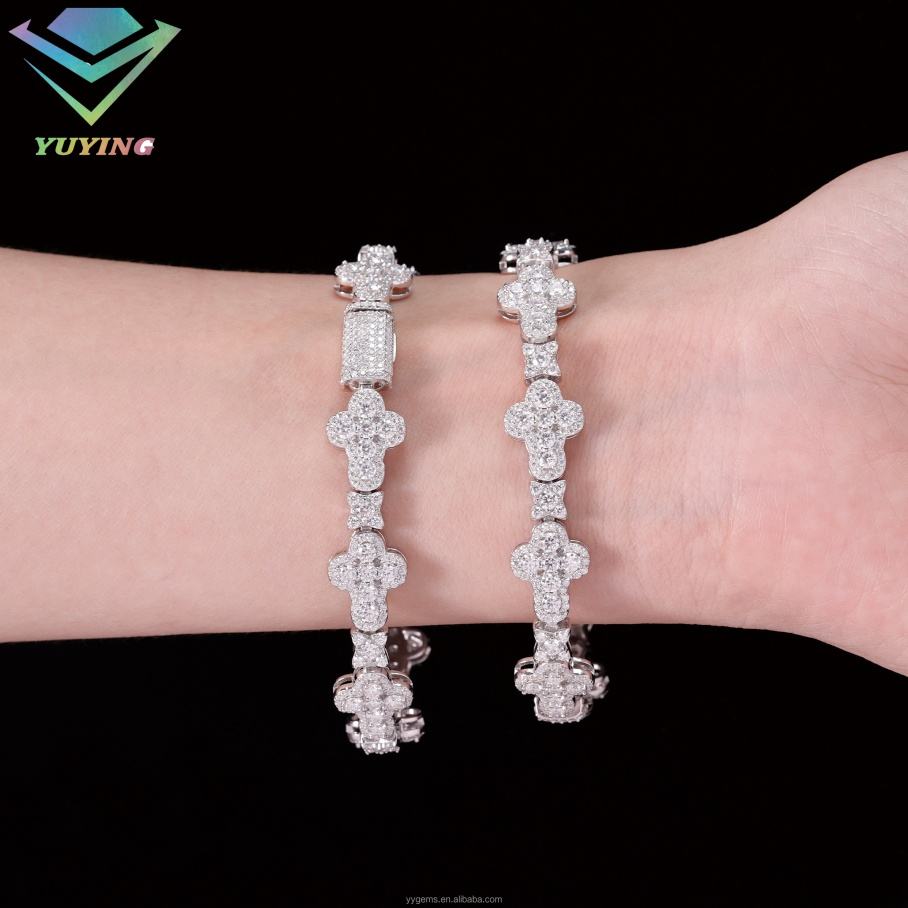 New Arrival Cross Chain 15MM Fashion Style 925 Sterling Silver D/VVS Moissanite Flower Charms Men Women Bracelet Fine Jewelry