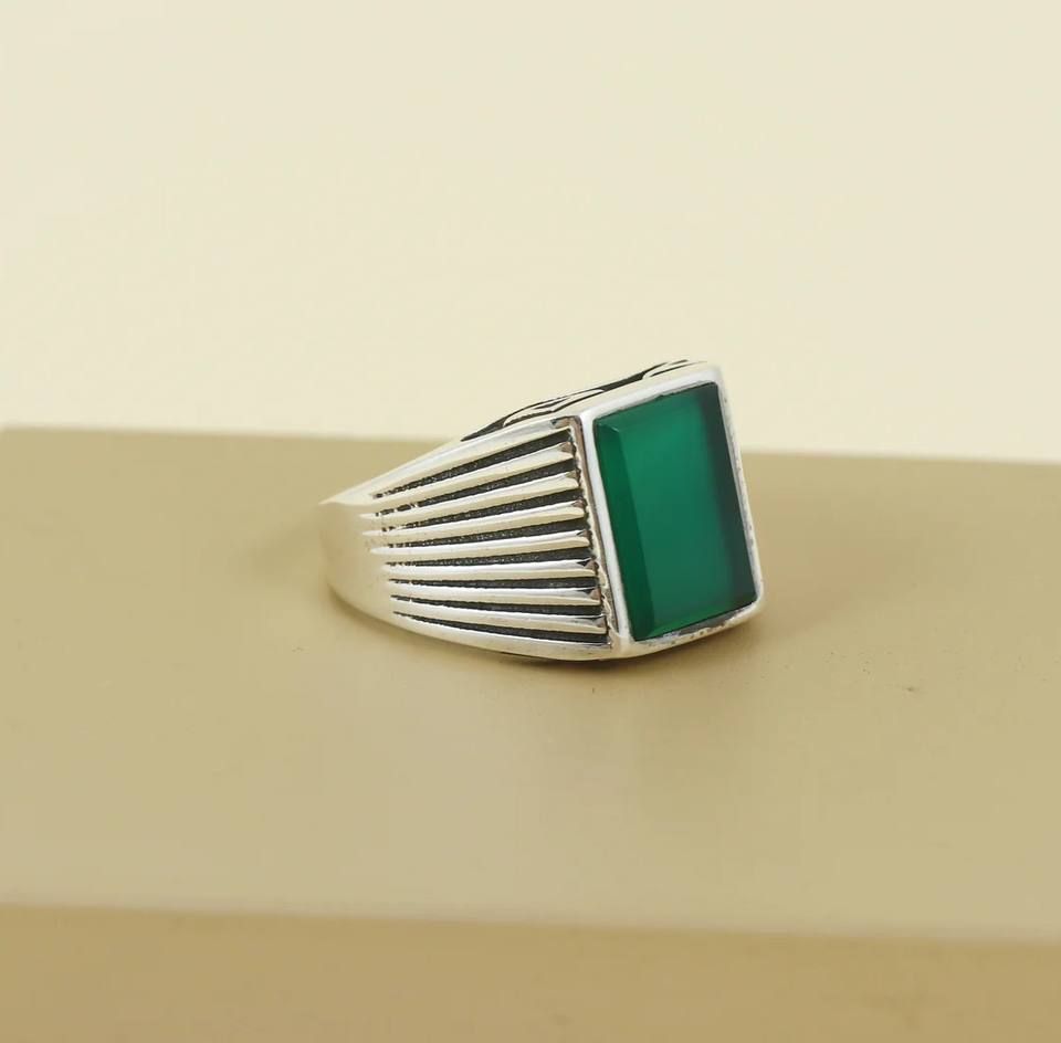 New Arrival Custom Jewelry Sterling Silver 925 Retro Punk Man Ring Agate Bezel Setting Stripe Pattern Rhodium Plated Natural