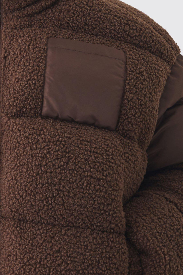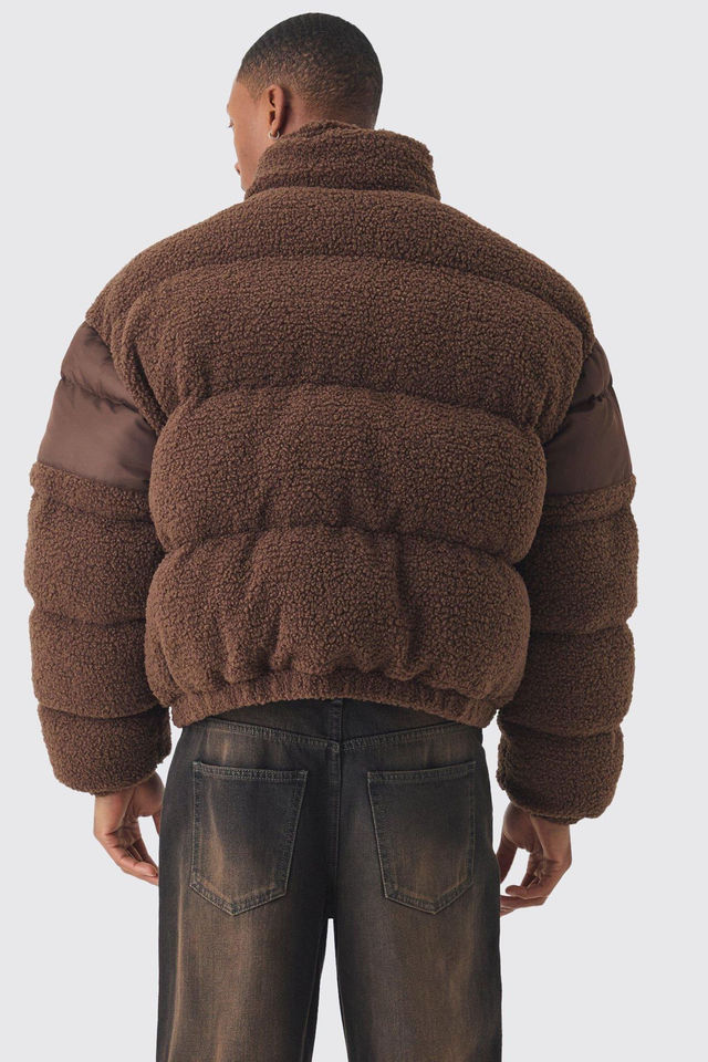 New Arrival Custom Logo Borg & Nylon Funnel Neck Puffer Jacket In Chocolate Windbreaker Winter Quilted Down Men's Bubble Jacket