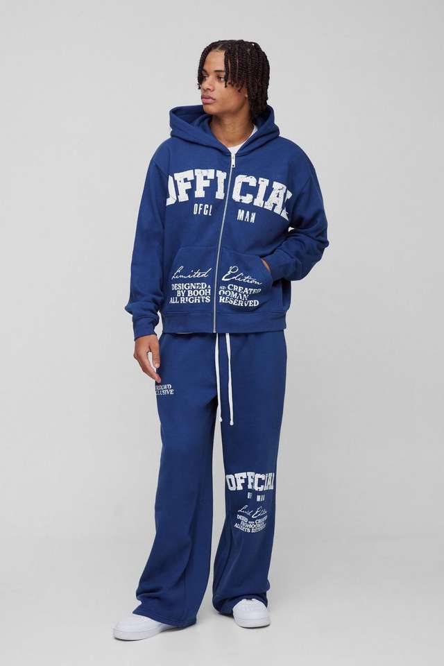 New Arrival Custom Logo Official Print Oversized Boxy Hoodie Zipper Sweatpants Sustainable Jogger Set & Cargo Pant Tracksuit