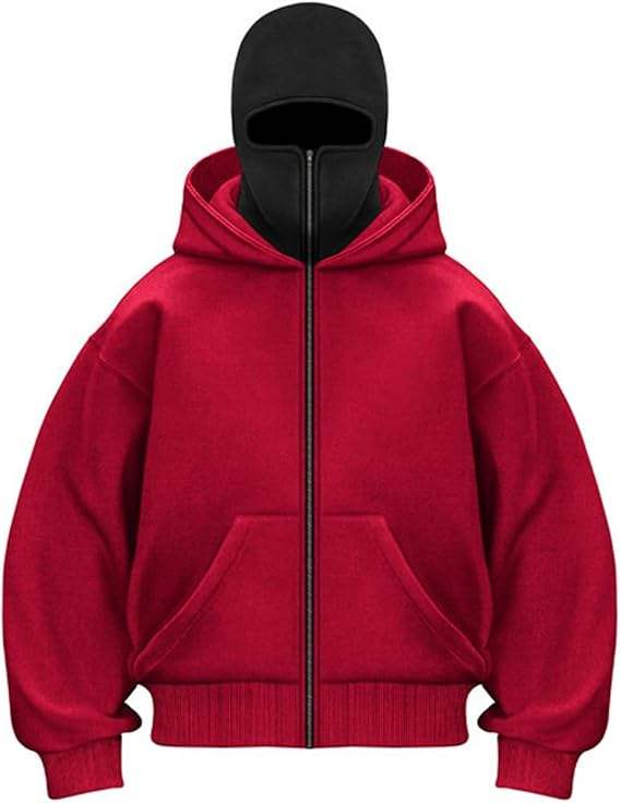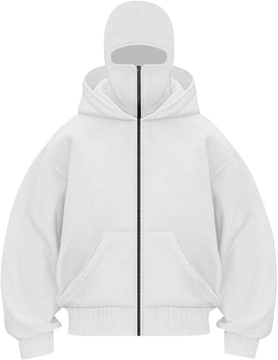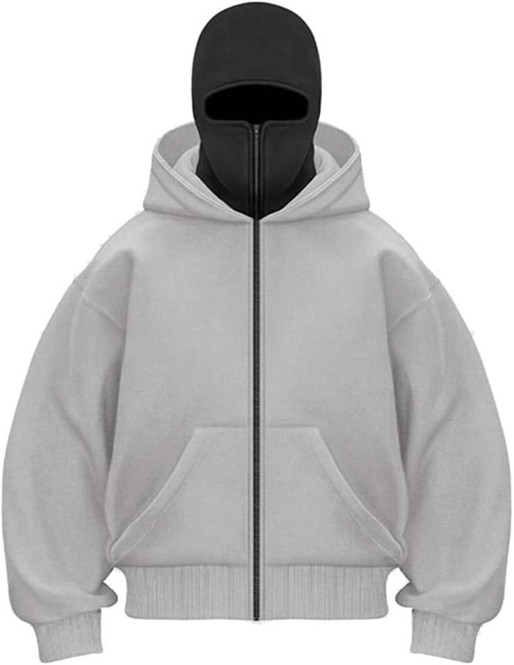 New Arrival Custom Made Balaclava Hoodie 100% Cotton Fleece Drop Shoulder Oversize Style Pocket Streetwear Zip Up Solid Pattern