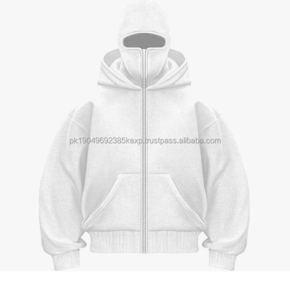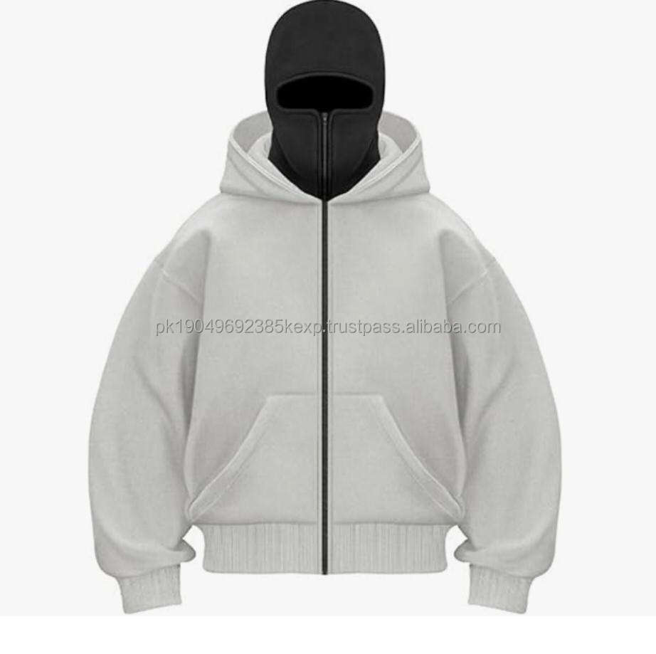 New Arrival Custom Made Balaclava Hoodie 100% Cotton Fleece Drop Shoulder Oversize Style Pocket Streetwear Zip Up Solid Patterns