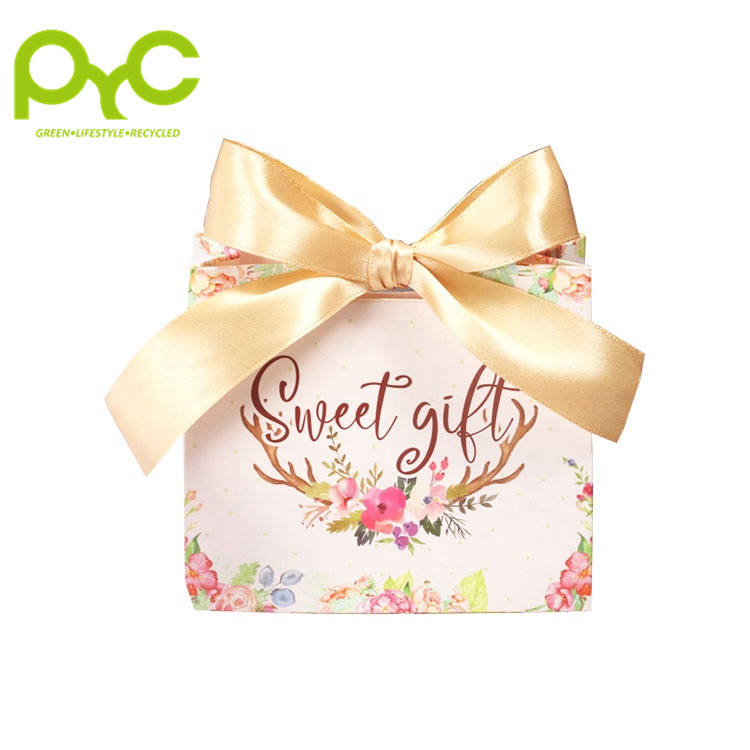 New Arrival Custom Printed Gift Paper Bag With Gold Stamping Paper Bag With Ribbon Handle