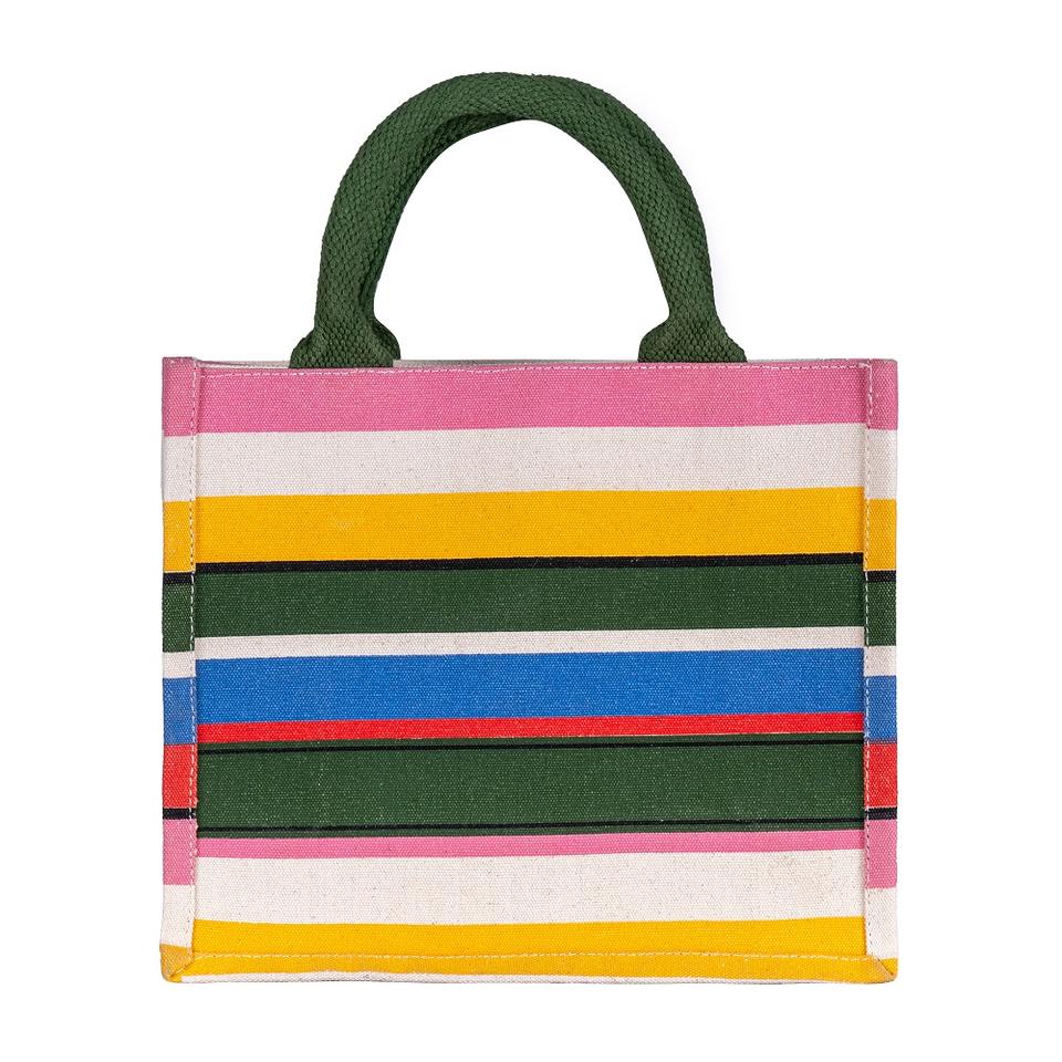 New Arrival Custom Printed Medium Size Stylish Ladies Cotton Canvas Tote Bag Striped Colorful Long for Beach Travel Shopping