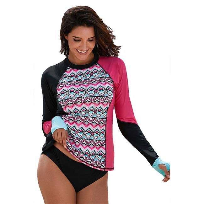 New Arrival Custom Sublimation Printed Women's Rash Guard Wholesale Stock Sublimated Swimming Logo Rash Guard
