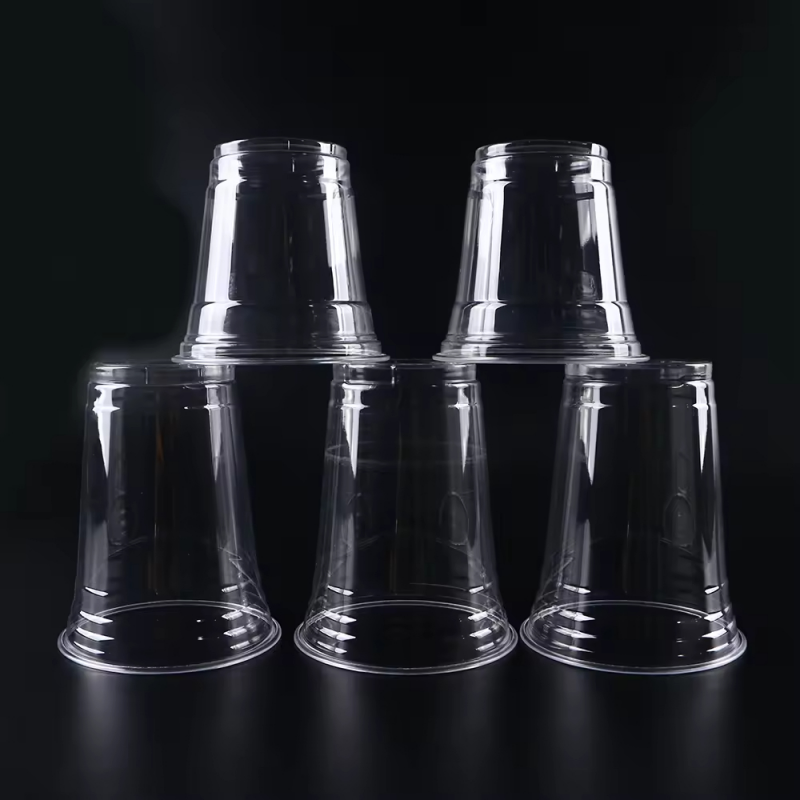 New Arrival Custom logo Printing Juice Cup 16oz 24oz 32oz clear Cold Drink PET Disposable Plastic Cups Tray Plastic Holder