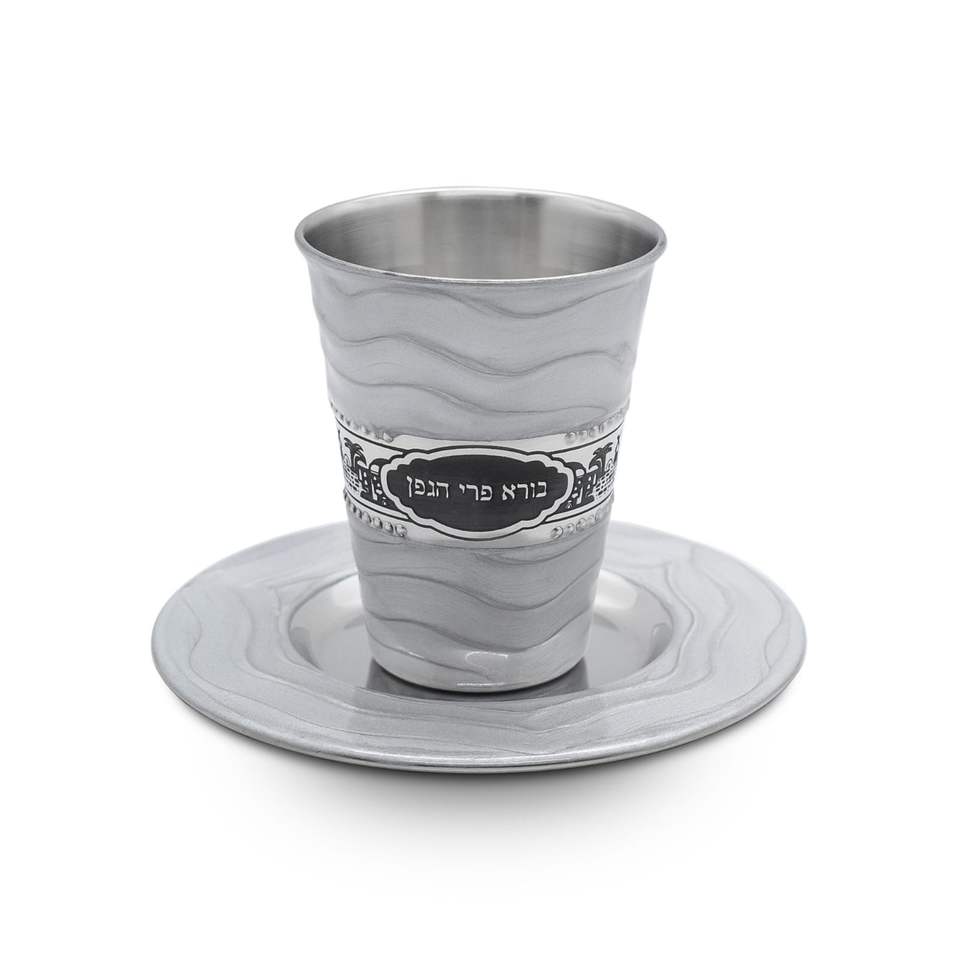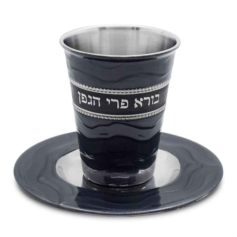 New Arrival Customised Premium Metal Kiddush Cup Plate Classic Featuring Blessing Text for Passover Seder Shabbos Yom Tov Decor