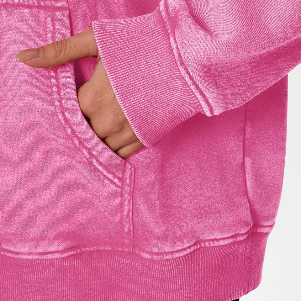 New Arrival Customized Logo Acid Wash Hooded 100% Cotton Women's Winter Casual Fleece Hoodies High Quality