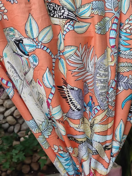 New Arrival Customized Luxury Living Room Door Curtains Orange Monkey Print Cotton Material Unique Curtains & Valances