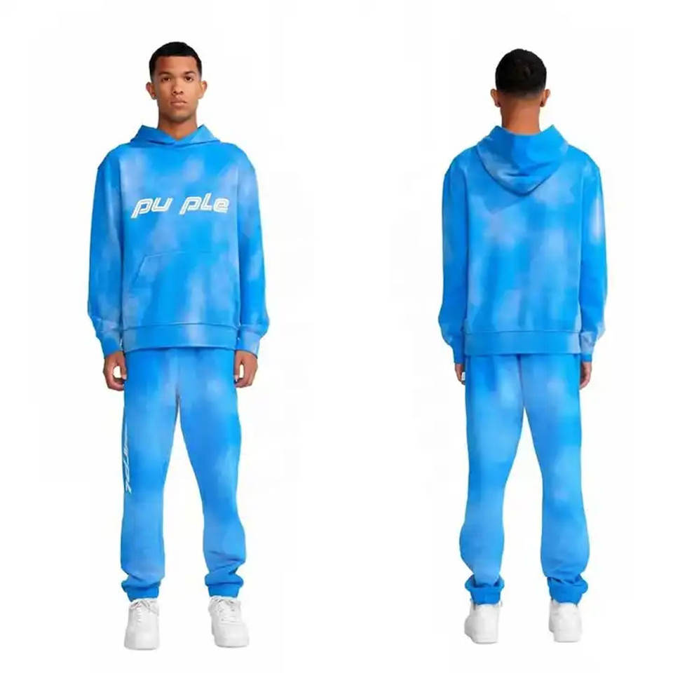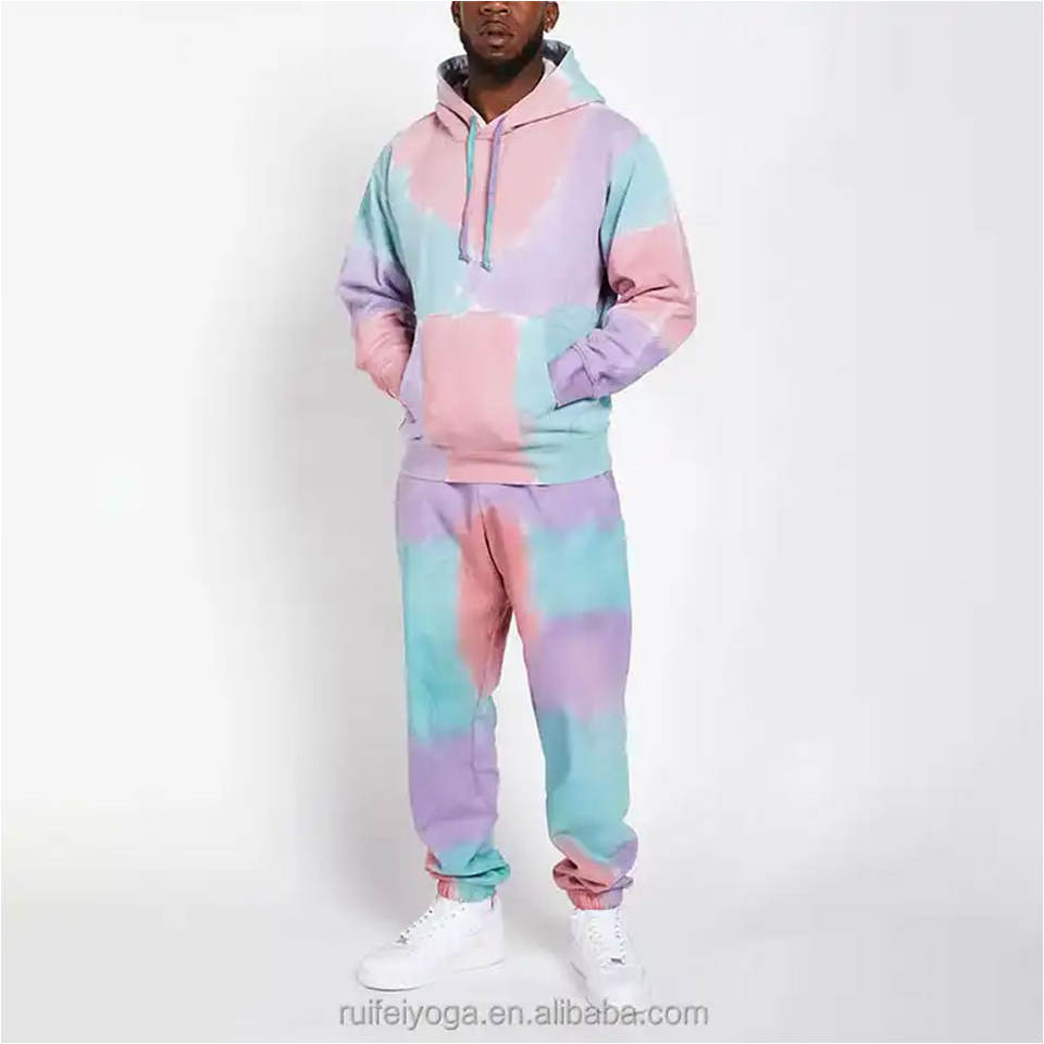 New Arrival Customized Tie Dye Blank Plain Pullover Tracksuits Vintage Oversize Acid Wash Two Piece Set Men's Tracksuit