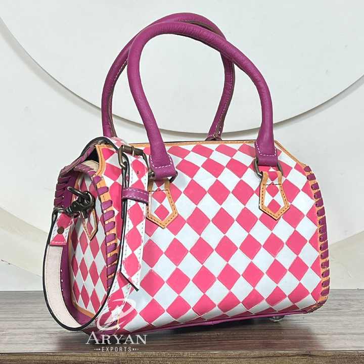 Product name:Hand Tooled Checkered Leather Duffle Bags