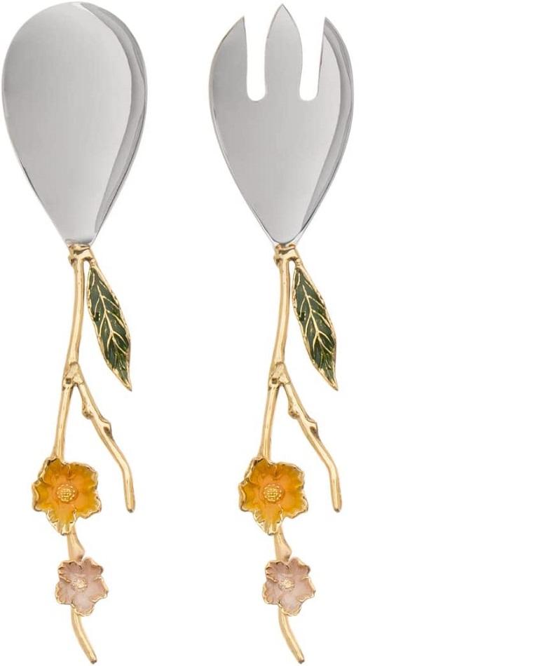 New Arrival Decorative Metal Salad Server Handmade Salad Spoon and Fork Unique Gold Plated Handle Home Kitchen and Restaurant