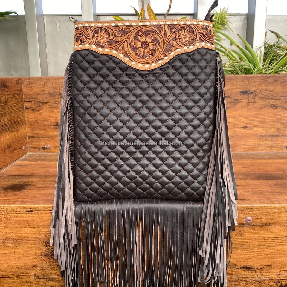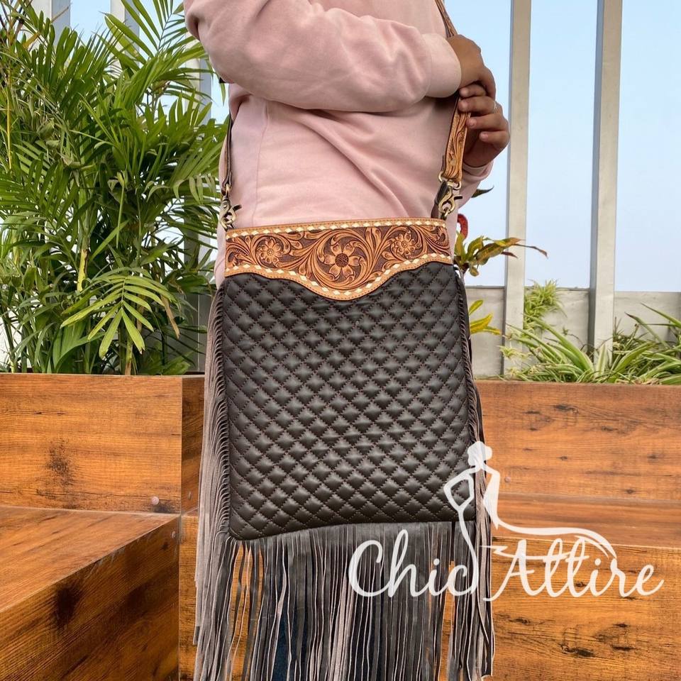 New Arrival Designer Crossbody Shoulder Bag Hand Tooled Quilted Genuine Leather with Large Fringe Luxury High Quality Handbag