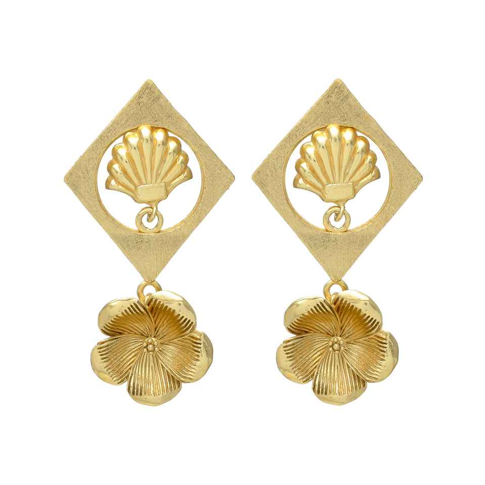 New Arrival Designer Earrings with Unique Flower Design square Shaped Brass Earring Set