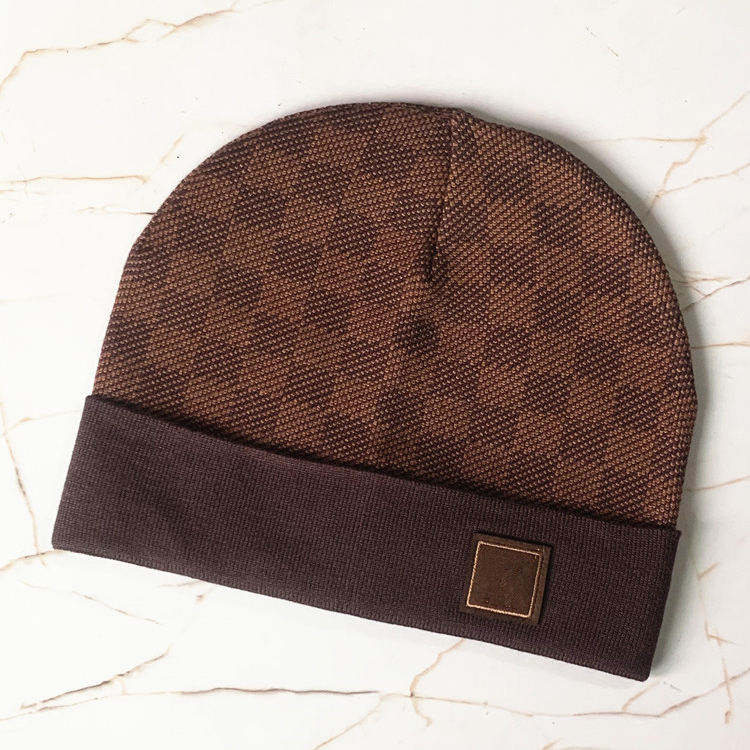 New Arrival Designer Winter Cap Soft Warm Knitted Beanie Hats Letter Printed Checkerboard Digital Cuffed Style Plaid Checked