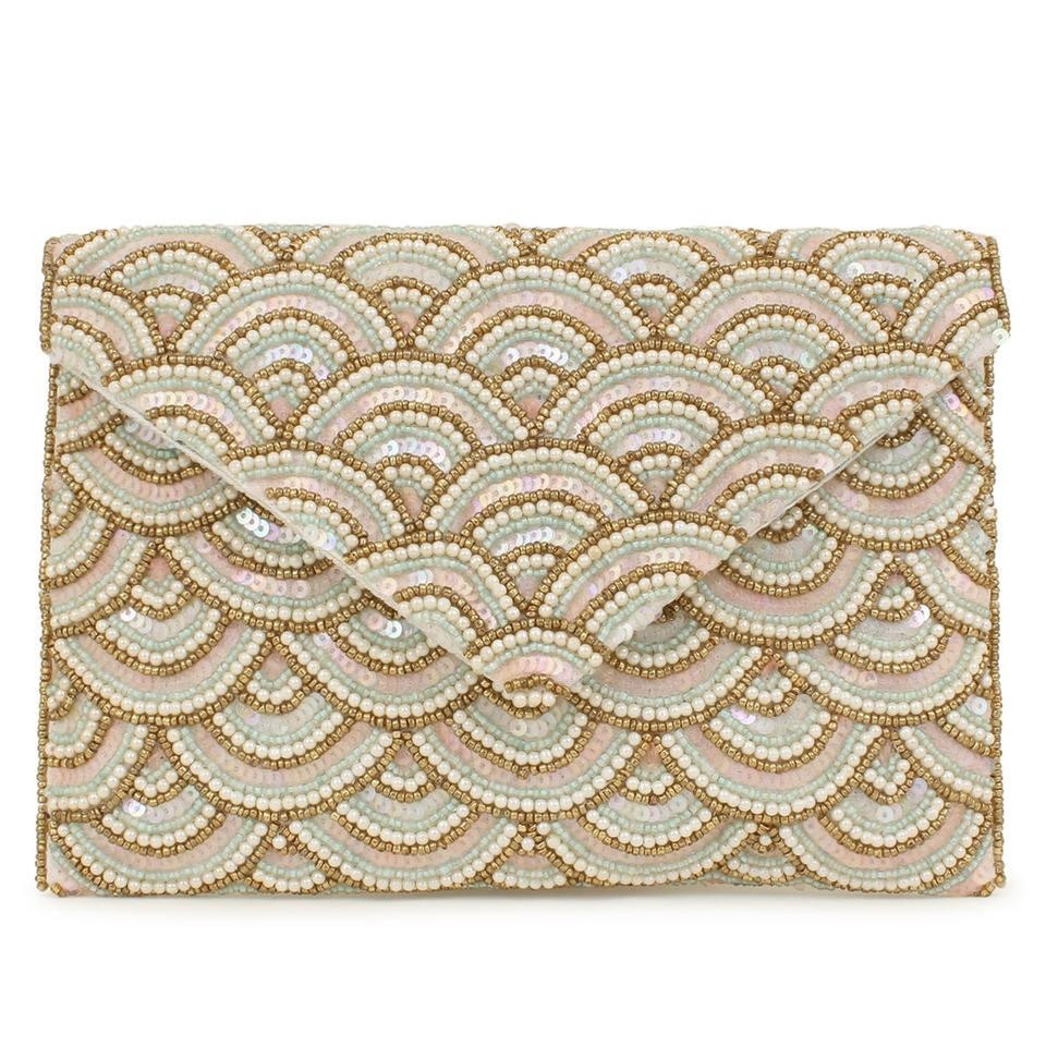 New Arrival Brazeal Studio Women Geometric Fold Over Beaded Clutch Seed Bead Handbags Crossbody Bag Customizable Chain